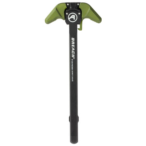 The AERO AR15 BREACH Ambidextrous Charging Handle with Large Lever in OD Green is a high-performance upgrade for your AR15 platform. Precision-machined from 7075-T6 aluminum, this charging handle offers exceptional durability and strength. The large lever design provides an extended gripping surface, making it easier to manipulate the bolt, especially under stress or while wearing gloves. Its ambidextrous layout ensures effortless operation for both left and right-handed shooters.