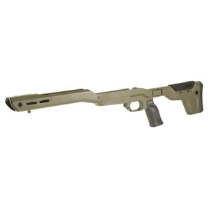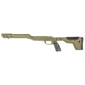 The MDT HNT26 Folding Chassis for Howa 1500 Short Action in Green offers a lightweight and camouflage-friendly option for hunters. This chassis system combines a magnesium alloy base with carbon fiber components to achieve a minimal weight of 26-31 ounces. The folding stock enhances portability, while the carbon fiber construction provides comfort in various weather conditions.