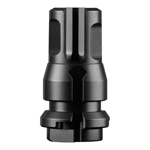The Dead Air KeyMicro 1/2x28 9mm muzzle device is a versatile attachment for 9mm firearms with 1/2x28 threaded barrels. This compact device functions as both a standalone muzzle brake and a mounting point for Dead Air suppressors using KeyMicro or KeyMo adapters. Precision-machined from 4140 HT alloy steel with a durable black nitride finish, it offers excellent durability and corrosion resistance.