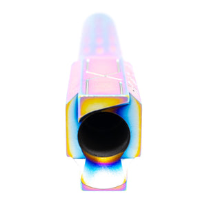 Elevate your Glock 19's performance and aesthetics with the Faxon Flame Fluted Non-Threaded Barrel in chameleon finish. This match-grade barrel is precision-machined from 416-R stainless steel for superior accuracy and durability. The unique flame fluting pattern not only provides a striking appearance but also aids in heat dissipation and weight reduction. The chameleon PVD finish offers excellent corrosion resistance and a captivating color-shifting effect. This non-threaded design maintains the original profile of your Glock 19. Compatible with Gen 3-5 Glock 19 models, this barrel is an excellent upgrade for both duty and competition use, offering enhanced accuracy and eye-catching aesthetics without altering the pistol's overall length.