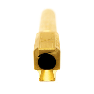 Elevate your Glock 19's performance and aesthetics with the Faxon Flame Fluted Non-Threaded Barrel in TiN gold finish. This match-grade barrel is precision-machined from 416-R stainless steel for superior accuracy and durability. The unique flame fluting pattern not only provides a striking appearance but also aids in heat dissipation and weight reduction. The TiN (Titanium Nitride) gold finish offers excellent corrosion resistance and a luxurious look. This non-threaded design maintains the original profile of your Glock 19. Compatible with Gen 1-5 Glock 19 models, this barrel is an excellent upgrade for both duty and competition use, offering enhanced accuracy and eye-catching aesthetics.