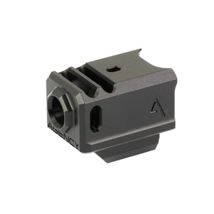 The Agency Arms 417 Dual Port Compensator for Glock Gen 5 in Black is a high-performance upgrade designed to reduce felt recoil and muzzle rise. Machined from 7075 aluminum with a durable black anodized finish, this compensator features two vertical ports and two side venting ports for maximum recoil reduction. It's specifically designed for Gen 5 Glock models 17, 19, 19X, 34, and 45, offering improved shot-to-shot recovery and enhanced accuracy.