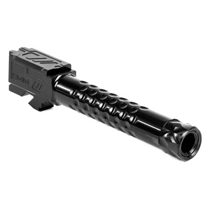 The ZEV Technologies Optimized Match Threaded Barrel for Glock 19 Gen 1-5 in Black DLC is a premium upgrade designed to enhance accuracy and versatility. Precision machined from 416R stainless steel, this match-grade barrel offers superior accuracy and durability. The Black DLC (Diamond-Like Carbon) finish provides excellent corrosion resistance and a sleek tactical appearance. With a 1/2x28 threaded design, this barrel allows for easy attachment of suppressors or other muzzle devices. Featuring ZEV's proprietary 1:14" left-hand twist rifling, this barrel ensures optimal bullet stabilization for enhanced accuracy across all standard bullet weights. The recessed target crown, new match chamber, and stylized barrel hood with caliber and model engravings contribute to its exceptional performance in both competition and duty use scenarios.