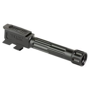 Upgrade your Glock 43's performance with Lantac's 9INE fluted threaded barrel in black finish. Crafted from certified pre-hardened DFARS compliant 416R stainless steel, this barrel offers exceptional durability and corrosion resistance. The 1/2-28 TPI RH threading accommodates a wide range of suppressors and muzzle devices. Featuring a 1:10 twist rate and cut rifling, this barrel delivers match-grade accuracy and consistency. The proprietary flute pattern reduces weight and improves heat dissipation. The black finish provides excellent wear resistance and a tactical appearance. Engineered for a perfect drop-in fit for Glock 43 models, this barrel maintains factory reliability while offering improved precision for demanding shooters of subcompact pistols.