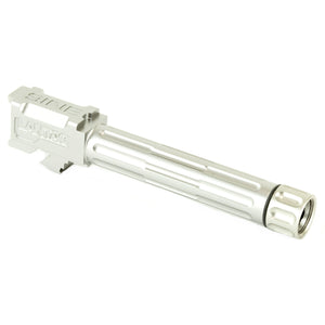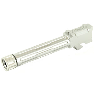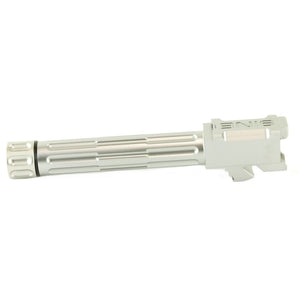 Upgrade your Glock 19's performance with Lantac's 9INE fluted threaded barrel in stainless steel. Crafted from certified pre-hardened 416R stainless steel, this barrel offers exceptional durability and corrosion resistance. The 1/2-28 TPI RH threading accommodates a wide range of suppressors and muzzle devices. Featuring a 1:10 twist rate and cut rifling, this barrel delivers match-grade accuracy and consistency. The satin blast finish provides a sleek appearance while maintaining the natural corrosion resistance of stainless steel. The proprietary flute pattern reduces weight and improves heat dissipation. Engineered for a perfect drop-in fit, this barrel maintains factory reliability while offering improved precision for demanding shooters.