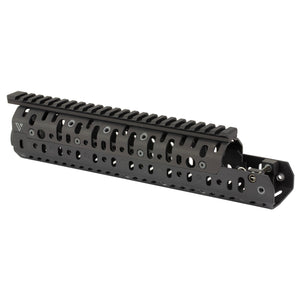 The Vltor FAL CASV Long Rail in black is a premium upgrade for standard inch or metric FAL rifles. This 11.75" handguard is designed to enhance the versatility and performance of your FAL. Crafted from hard coat anodized 6061 aluminum, it offers exceptional durability while minimizing weight. The rail system mounts securely to both the receiver and barrel, improving overall accuracy and system rigidity. Multiple mounting points for Picatinny rails and QDS sling swivels provide extensive customization options. This long version is ideal for full-size FAL rifles, offering ample real estate for accessories and improved heat dissipation.