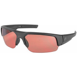 The Magpul Helix sunglasses with black frame and rose lenses provide enhanced contrast and visual acuity across various light conditions. These versatile, ballistic-rated sunglasses offer superior clarity and impact protection for active lifestyles. The rimless design ensures an uncompromised field of view and professional-grade eye protection. Excelling in humid or wet environments, the Helix sheds sweat and moisture effectively. Ballistic rated to Z87+ and MIL-PRF 32432 standards, these lightweight yet durable sunglasses are perfect for a wide range of activities and environments.