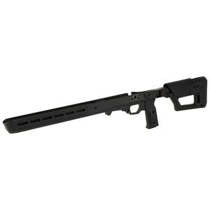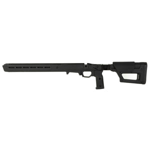 The Magpul Pro 700 Lite Chassis for Remington 700 Short Action rifles in black offers a streamlined platform for precision shooting. Constructed from lightweight materials, this chassis provides a balance of stability and portability. It features adjustable length of pull and cheek riser height for a custom fit. The chassis is compatible with AICS-pattern magazines and includes M-LOK slots for accessory mounting. Designed for versatility, it can accommodate both right and left-handed actions. The Pro 700 Lite Chassis represents Magpul's commitment to providing essential features in a lightweight package, ideal for shooters who prioritize mobility without sacrificing performance.